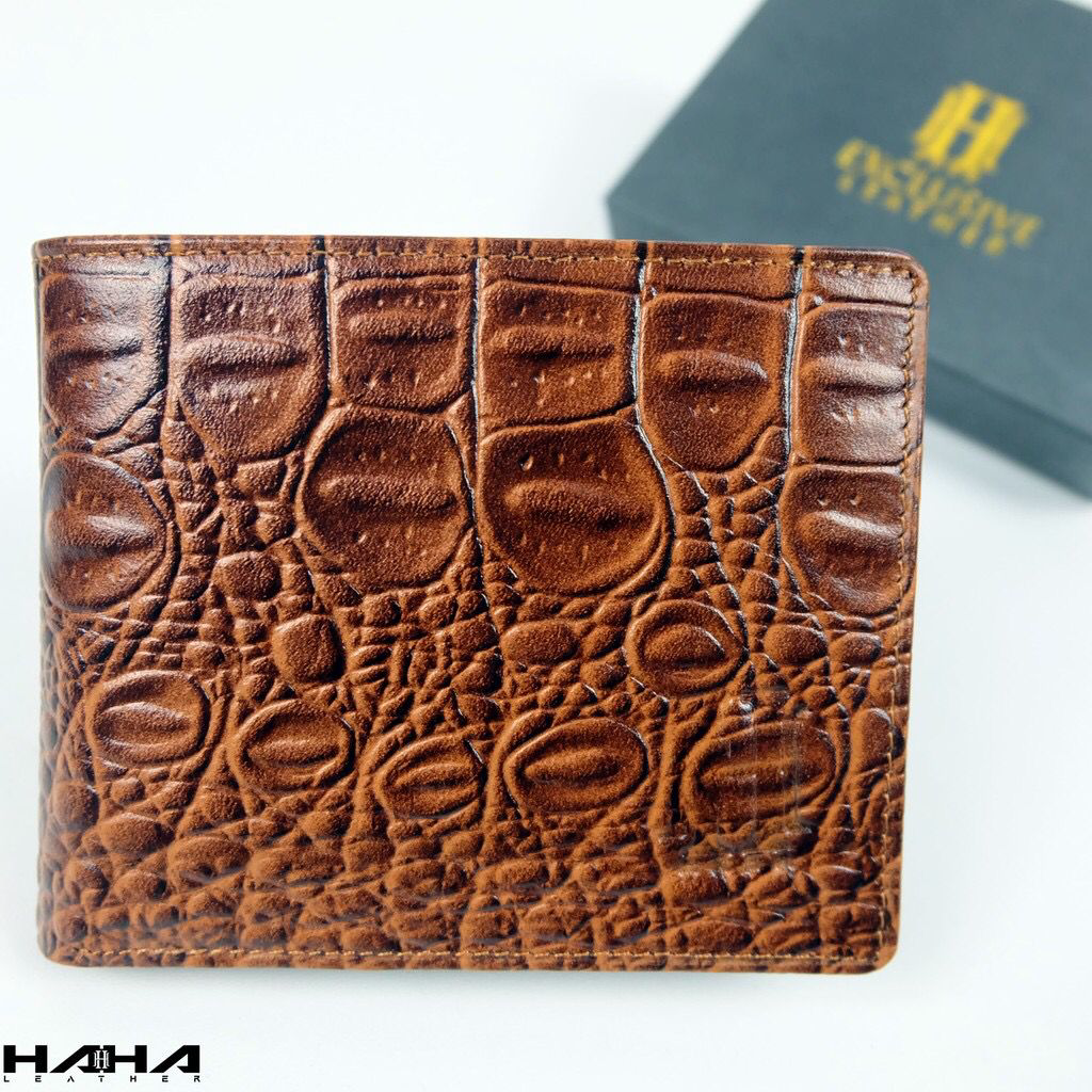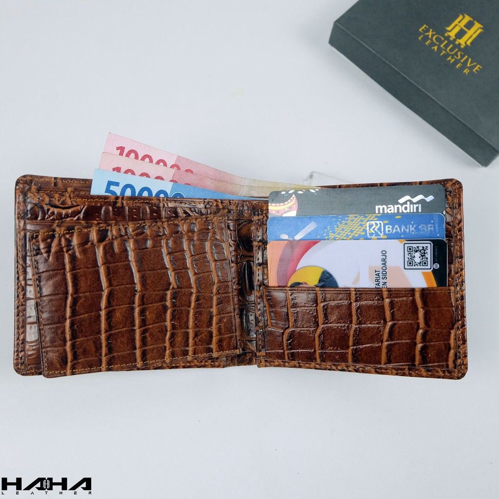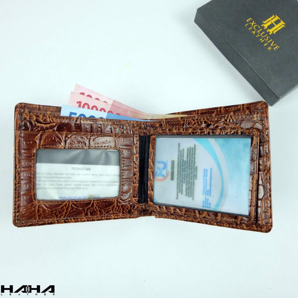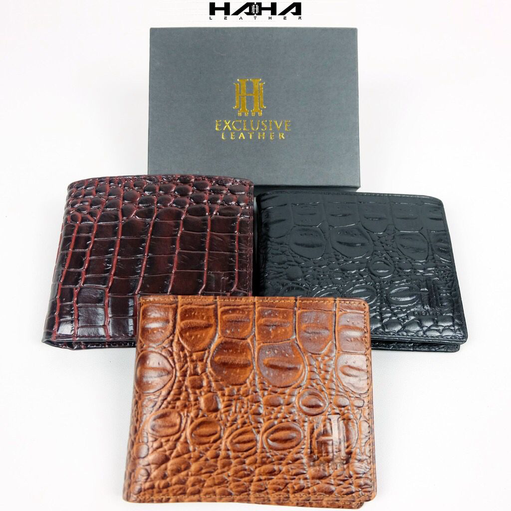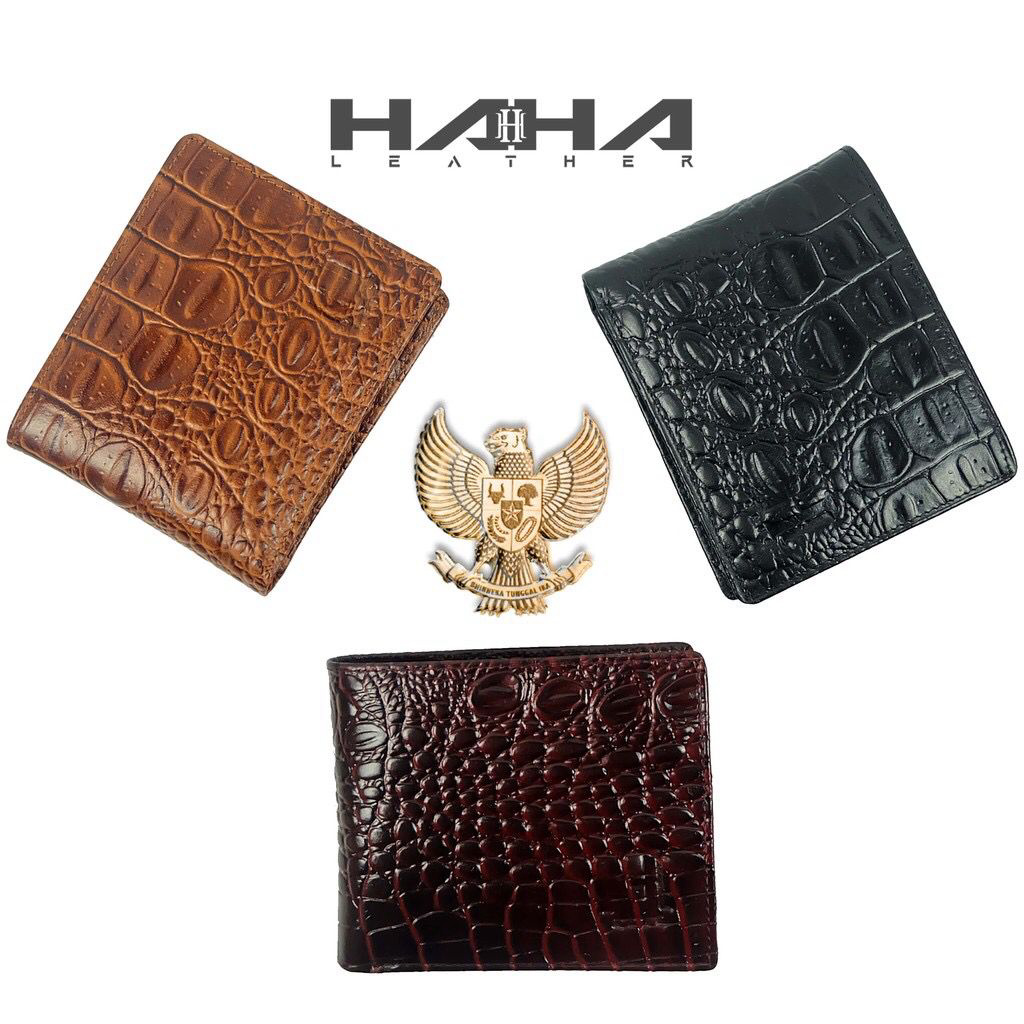 [HAHA] Dompet Lipat Uang Pendek Bahan Kulit Asli SHOCRO Wallet Leather Motif Buaya Cowok Pria Laki