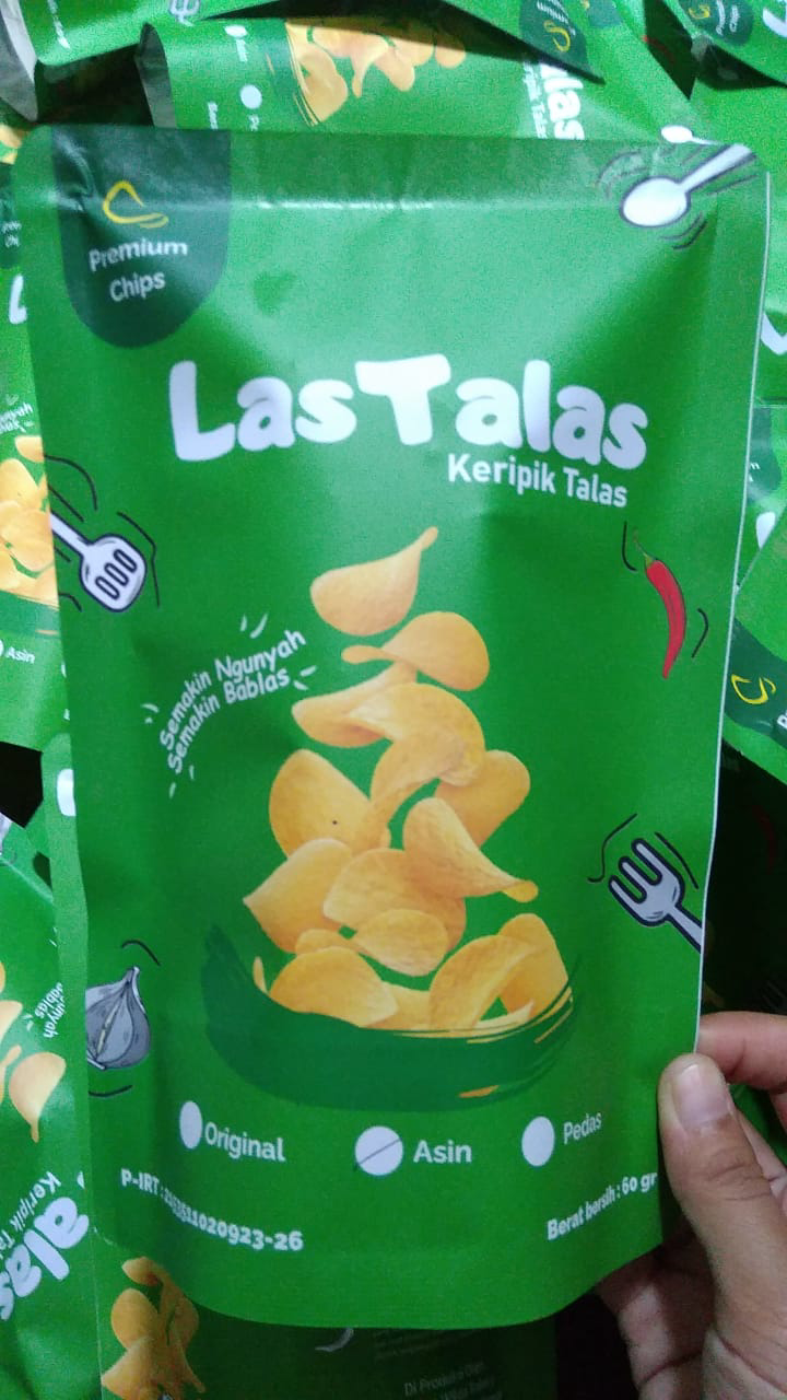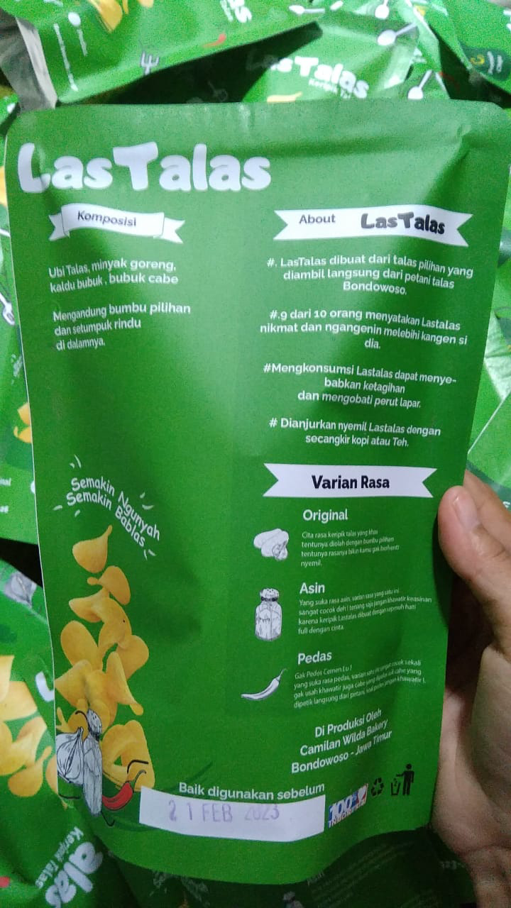 Keripik talas premium Lastalas memiliki 3 varian rasa yang tertera di kemasan produk.