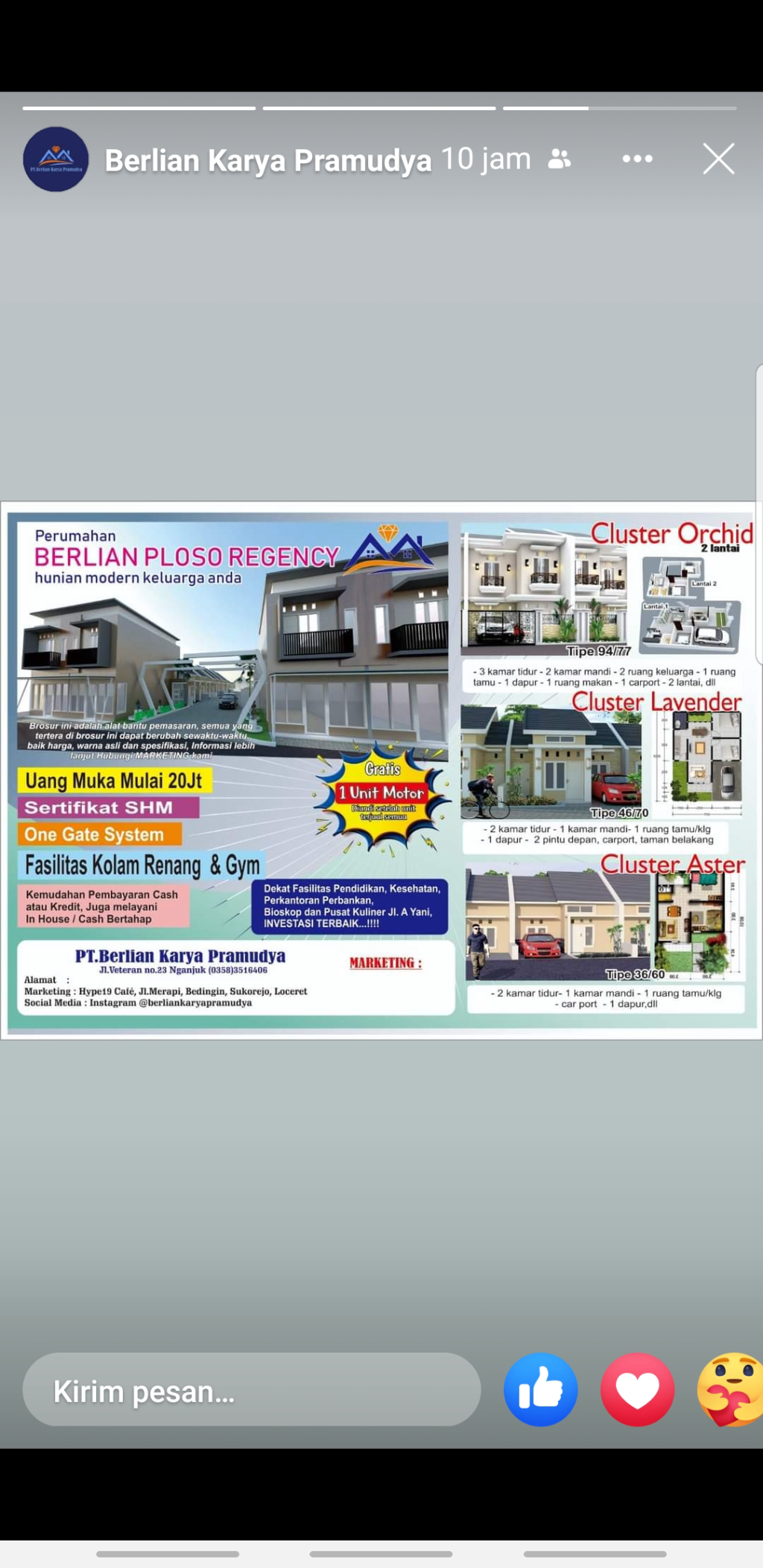 Perumahan dengan konsep healthy living tersedia kolam renang untuk warga Perumahan, one gate system, CCTV, dengan 3 tipe rumah :